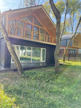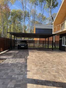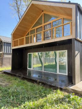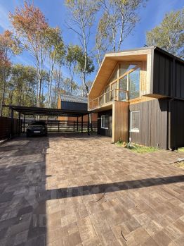 Загородный дом площадью 240 м2 расположен на компактном участке в 6,5 соток внутри уединенного элитного коттеджного поселка, состоящего из всего 7 домов, построенных по единому проекту GOODWOOD КФ-4 барнхаус.