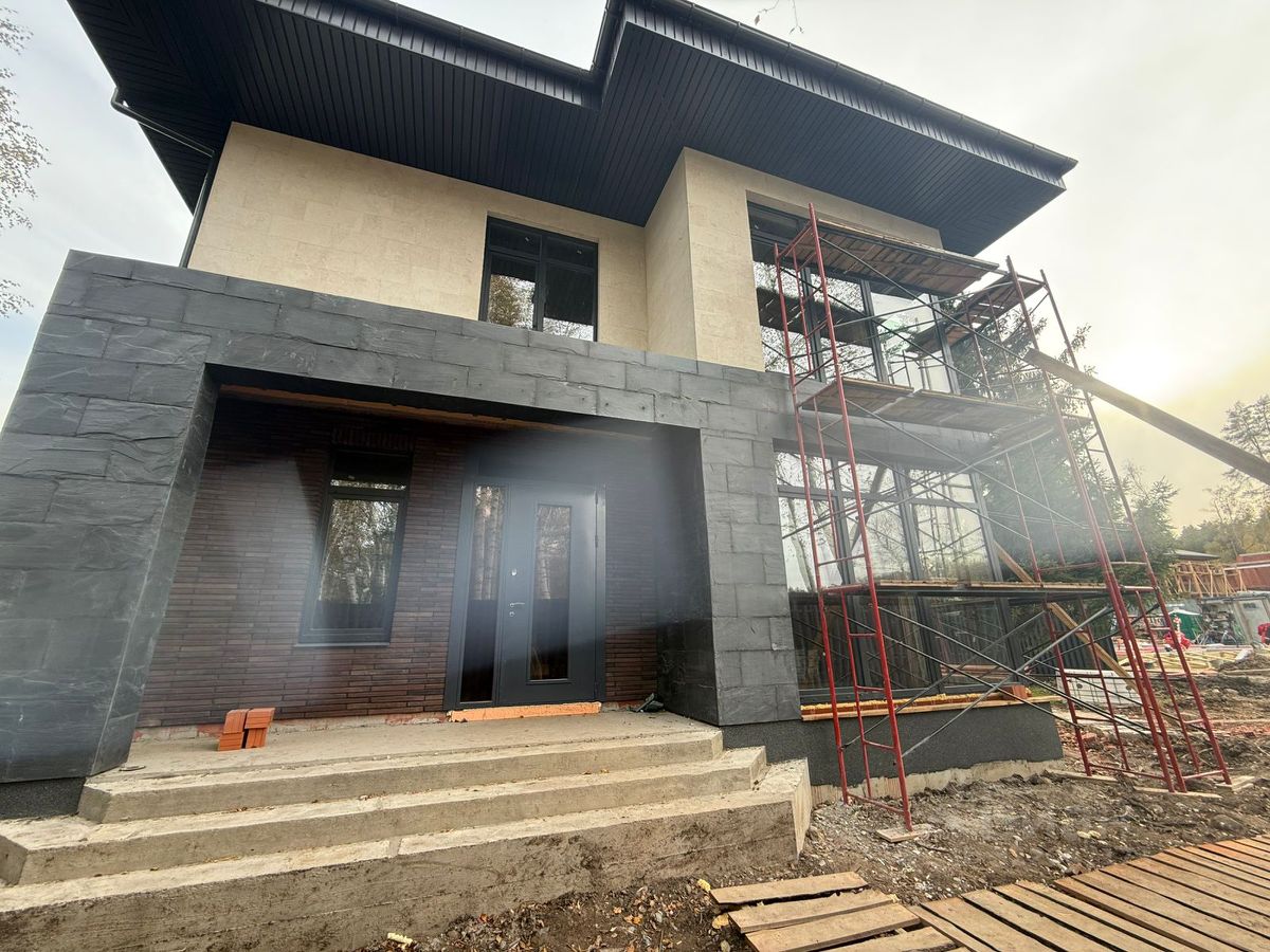 Дом построен из тёплого керамического блока с отделкой фасада натуральным камнем. Дом сдаётся в состоянии закрытого тёплого контура с благоустройством территории