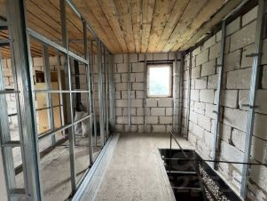 Состояние: Дом полностью готов к внутренним отделочным работам. Продается вместе со стройматериалами (бетономешалка, гкл, трубы, печь и др.)