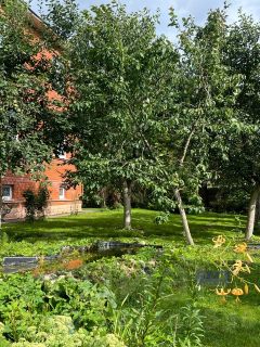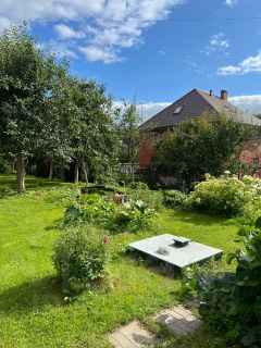 Участок ухожен и облагорожен: дорожки, газон, много лесных и фруктовых деревьев, хвойные деревья (сосны и ели), красивые кустарники, цветы, пруд, огород и теплица, гостевой 2-х этажный дом.