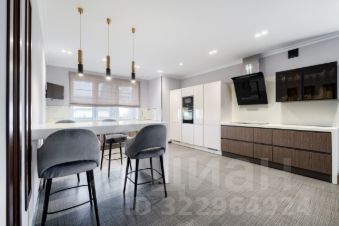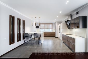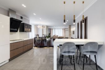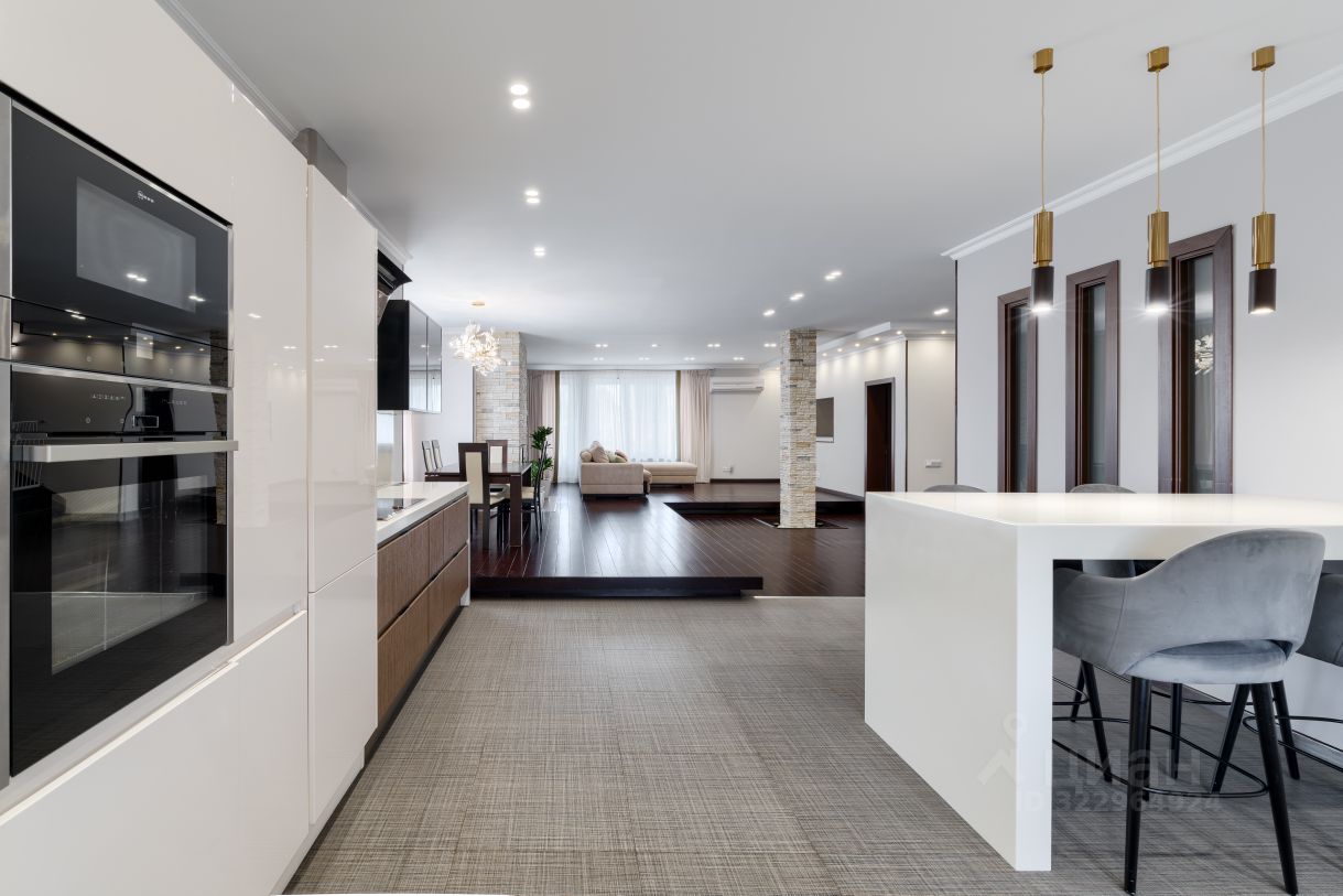 Кухонный гарнитур с встроенной бытовой техникой ведущих европейских производителей: варочная панель, духовка, СВЧ - Neff, посудомоечная машина Miele, два встроенных холодильника Liebherr. Рабочая поверхность расположена у окна