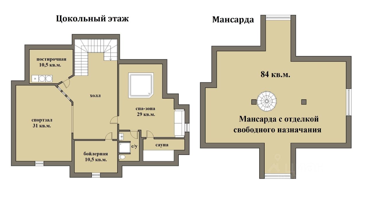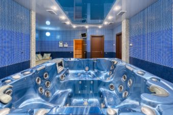 В цокольном этаже оборудованы спортзал, спа-зона с джакузи, сауна, солярий