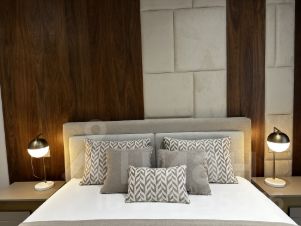 • 3 уютные спальни с панорамными окнами, текстилем и коврами на 2-ом этаже, мастер спальня с собственной гардеробной комнатой и санузлом