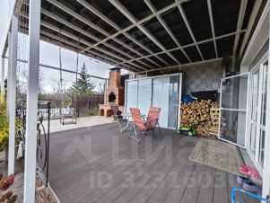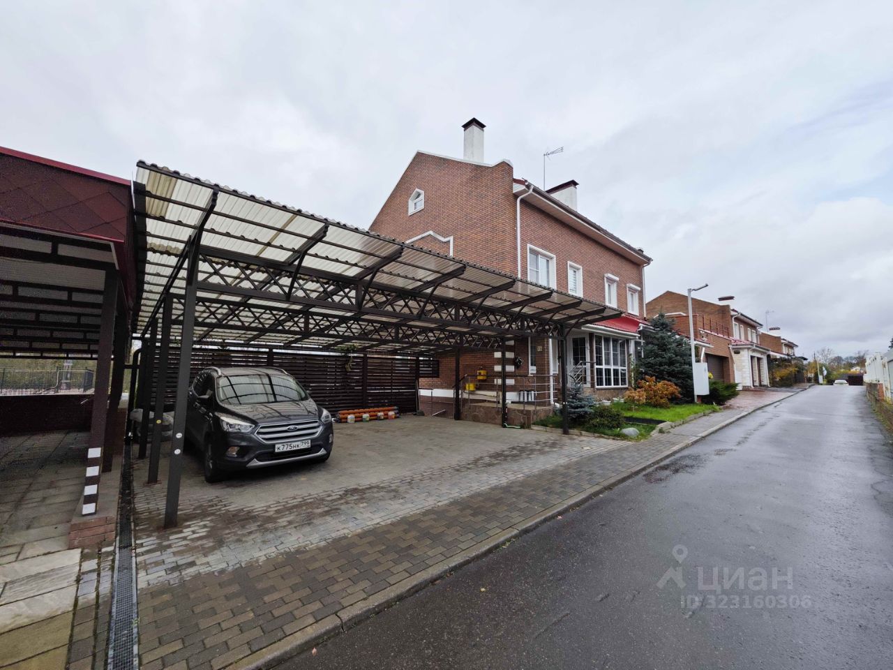 Большая парковочная зона с навесом на 6 машин, просторная двухэтажная веранда, на цокольном и первом этаже.