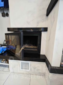На 1-м этаже: на первом этаже прихожая, огромная гостиная с камином и кухней с теплыми полами, имеется выход на 20 метровую веранду, закрытую мягкими окнами с кованными перилами, туалет.