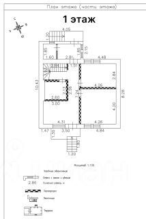 1 этаж: прихожая (10 м²), просторная гостиная (18 м²), светлая кухня (15 м²) с современной техникой, гостевая комната/кабинет (12 м²) и санузел с ванной.