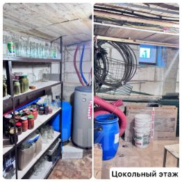 Цокольный этаж: два изолированных помещения (9,5 м² и 40 м²) с входами из дома и с улицы. Можно удобно хранить вещи и заготовки.