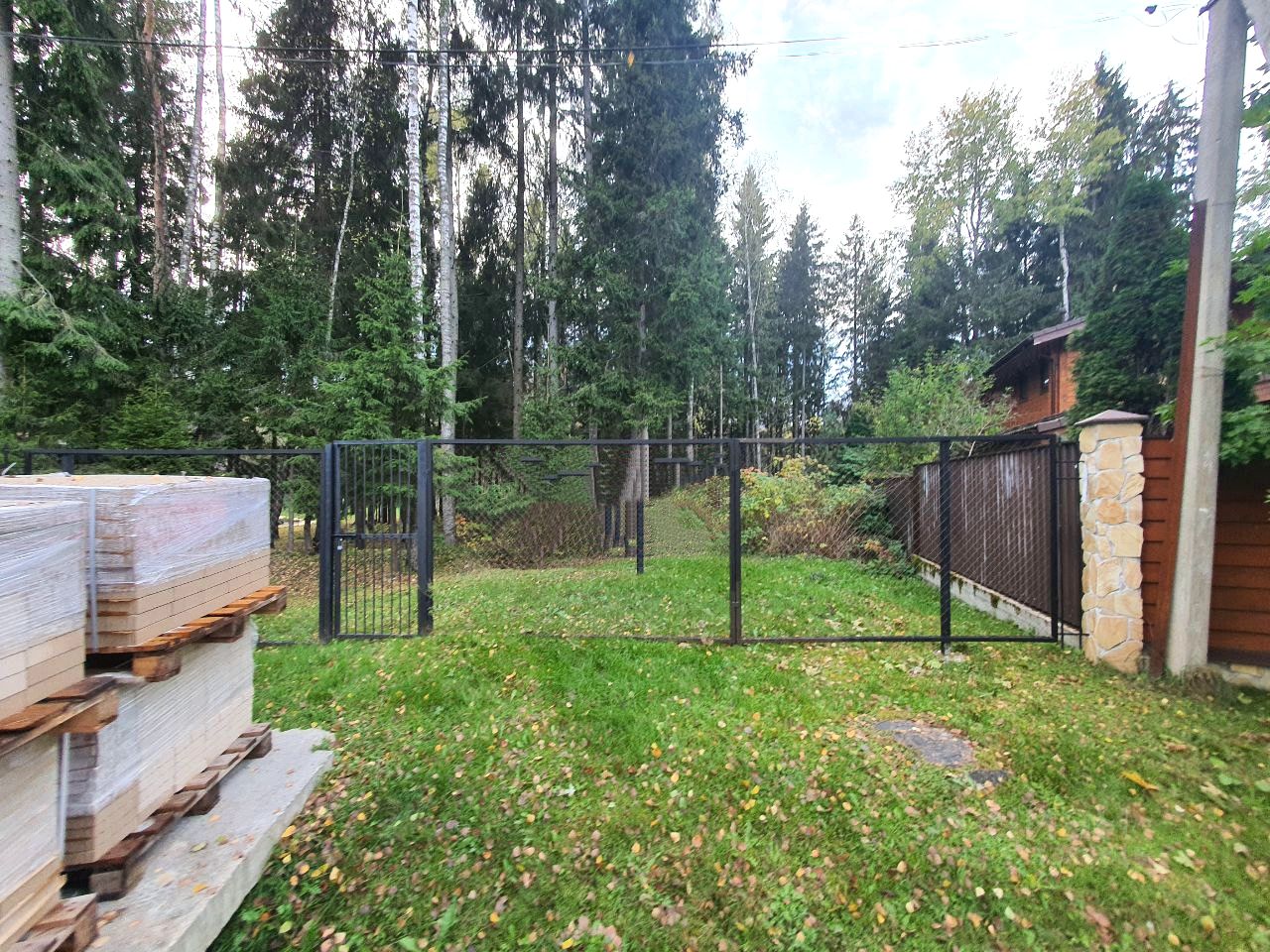 На соседних участках построены жилые дома. Дороги асфальтированы. Поселок охраняется, въезд по пропускам через КПП.