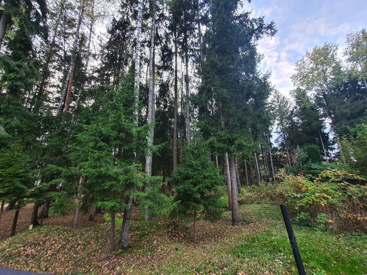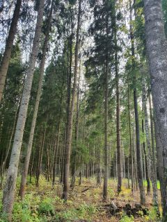 На участке растут взрослые деревья - корабельные сосны, дубы и березы. Есть лужайка для дома. Участок граничит с лесом и речкой. Идеальное расположение в тихом живописном месте, максимальная удаленность от дорог.