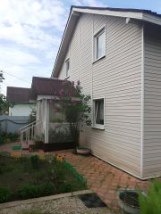 Продаётся 2х этажный брусовый дом, обшитый сайдингом 9*12 первый этаж и 9*9 второй. Дом для круглогодичного проживания с пропиской, газ (котёл Buderus двухконтурный), свет, вода скважина (стоит система очистки), колодец на 3 кольца для полива, дом стоит на пригорке- проложена дренажная система. На участке много чего растёт: смородина, разные яблони, вишня, черноплодная рябина, малина, клубника, жасмин и много разных цветов.