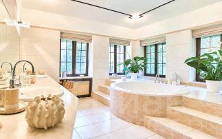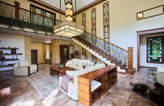 1 этаж тамбур, большой холл, 2 гардеробные комнаты, гостиная со вторым светом и каминной зоной, гостевой санузел, кухня с островом и столовой зоной, большой зал приемов с выходом на просторное летнее патио и участок, спальня 1 + санузел с душевой, домашний кинотеатр, бильярдная с баром и вторым светом, летняя терраса, постирочно-гладильная, котельная, техническая комната, СПА-зона (бассейн 13х3,5 м с противотоком, джакузи, душевая, зоны релакса), гараж на 2 автомобиля;