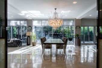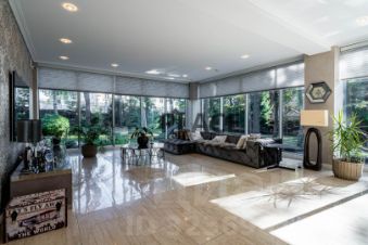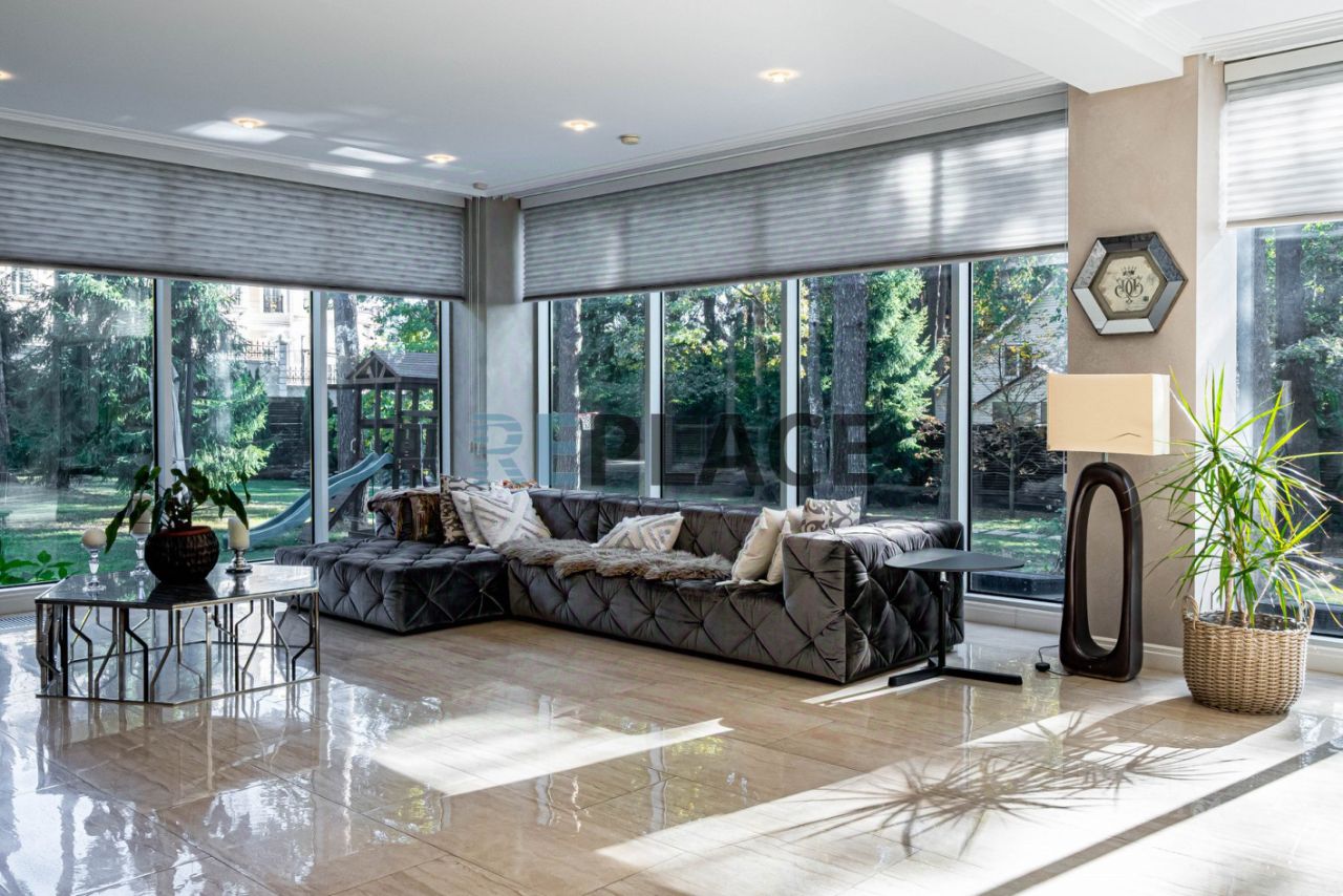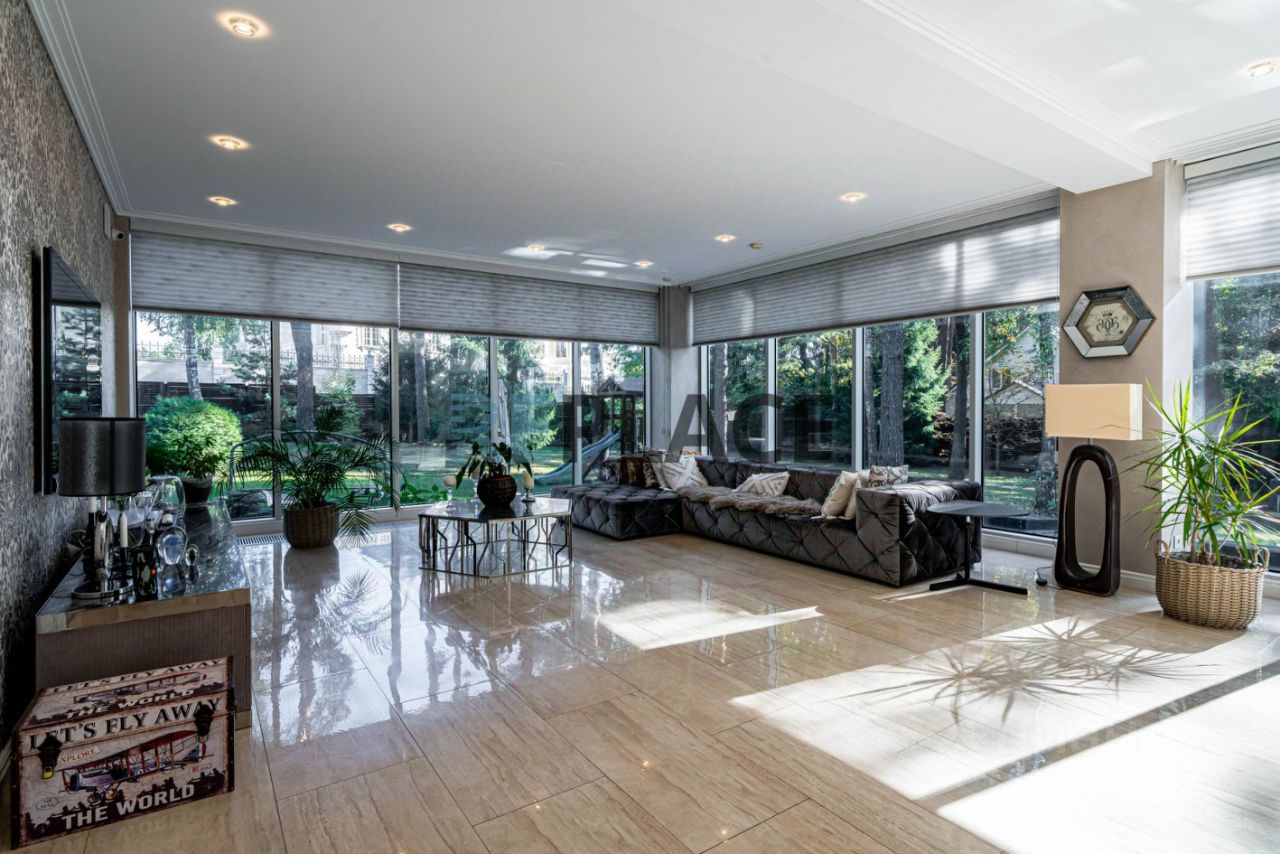 Полы во всем доме с подогревом. Дом оснащен приточной вентиляцией, кондиционированием, противопожарной системой, охранной системой, системой видеонаблюдения. Мебель, двери и лестница итальянских фабрик премиального сегмента, таких как: Longhi, Visionnaire. Облицовка дома выполнена из ореха. Витражное остекление дома ведущей фабрики Schuco. Также дом оснащен японским генератором Toyo.