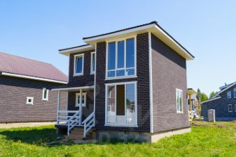 О доме: Дом в 2 полноценных этажа, 122,5 м2. Просторная гостиная с кухней с выходом на террасу, 4 спальни, гардеробная. Санузел на каждом этаже. Панорамное остекление. Фундамент-ленточный.