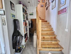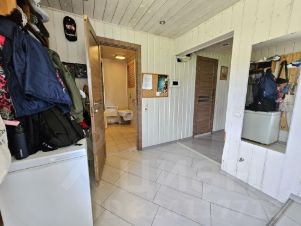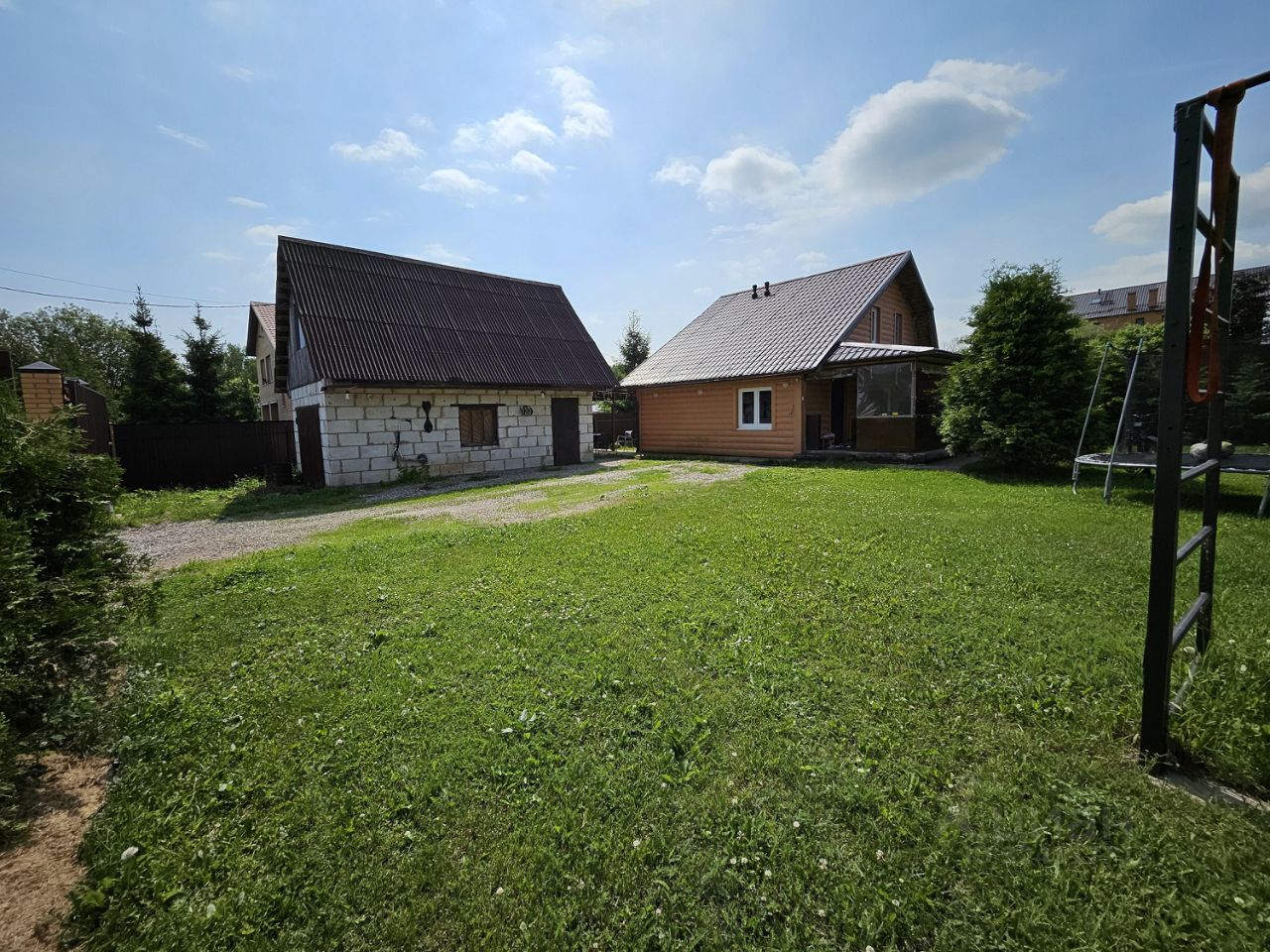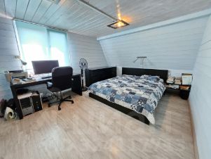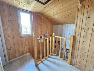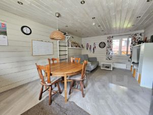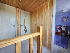 Дом из бруса, утеплен, внутри отделан натуральной доской, снаружи сайдинг. Фундамент монолитный, ленточный. В доме два этажа. На первом: прихожая, санузел с душевой кабиной, кухня-гостиная, бойлерная, гардеробная. На втором: две спальни, кладовая, санузел с ванной. Есть подвал для хранения овощей.