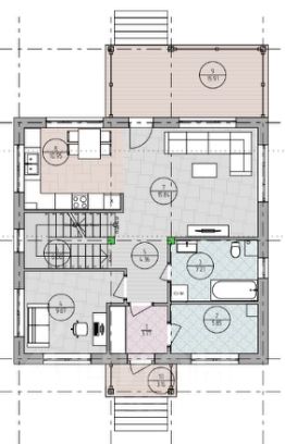 1 этаж: кухнягостиная, кабинет, санузел, постирочная/котельная.