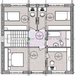 2 этаж: мастерспальня с гардеробной (можно как второй кабинет), две спальни, санузел с мансардным окном.