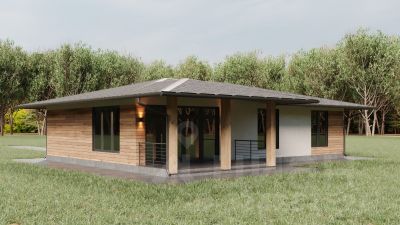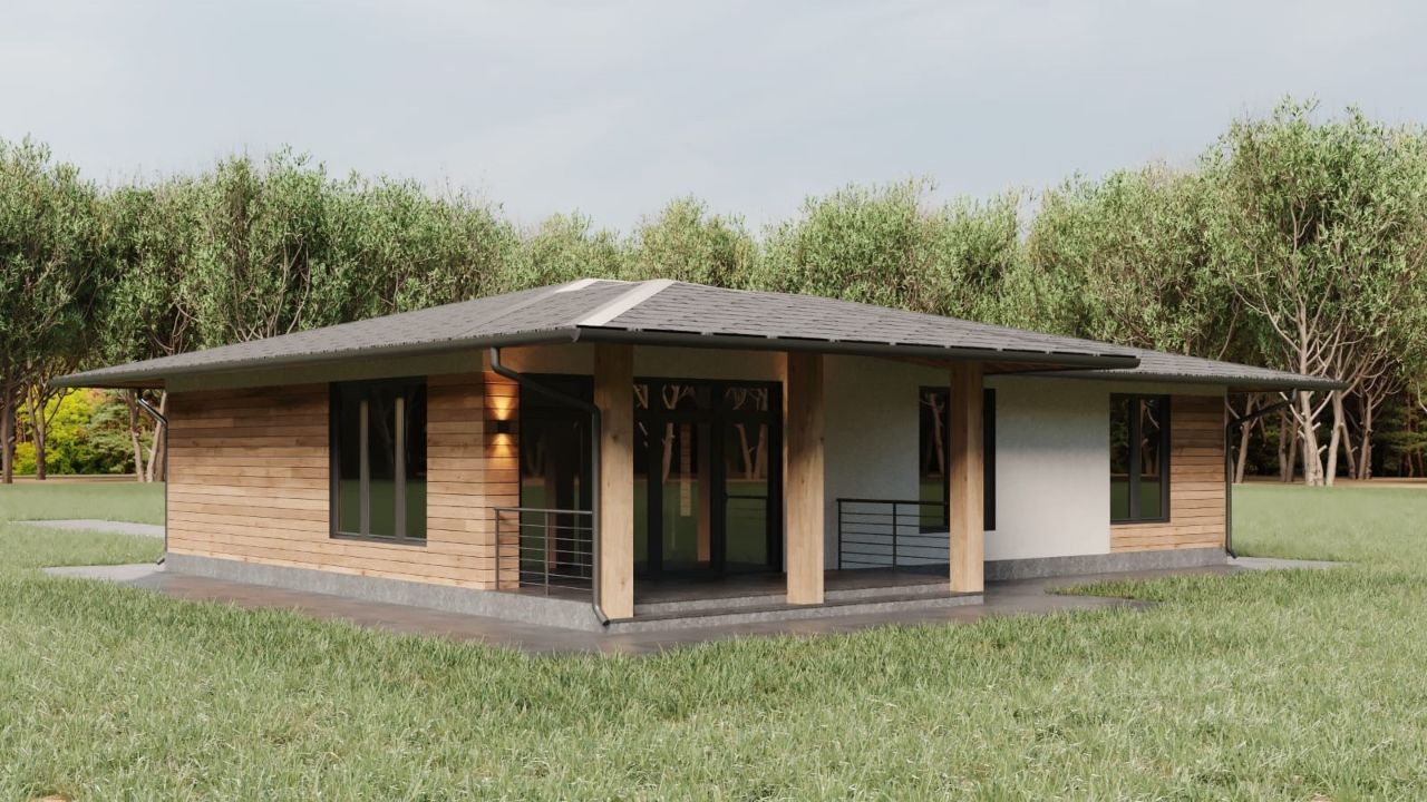 * Эстетика: Стильный фасад из штукатурки и планкена в природных оттенках.