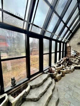 Дом оснащен всеми необходимыми коммуникациями, расположенные в тех. помещениях подвальной части дома. В доме имеется уникальный камин и большая отапливаемая крытая веранда для зимнего сада, совмещенная с кухней и гостиной.