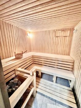 В подвальном помещении установлена сауна с помывочной зоной и большим количеством помещения для зон отдыха, спорт зала, хранения вещей и много другого.