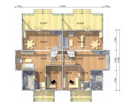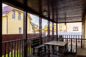 Дом построен в современном стиле с функциональной планировкой, состоит из двух отдельных таунхаусов. Общая площадь каждого - 301 кв.м., без учёта холодных зон - 200 кв.м. В доме 5 изолированных комнат, гостиная, кухня-столовая, прачечная, 3 санузла, из них один 13.5 кв.м. с эркером, сауна, лестница и кухня из массива лиственницы. Дом оборудован, системами - отопления, вентиляции, сигнализации, видеонаблюдения периметра, интернетом, электричество (40 кВт). Таунхаус требует отделки.