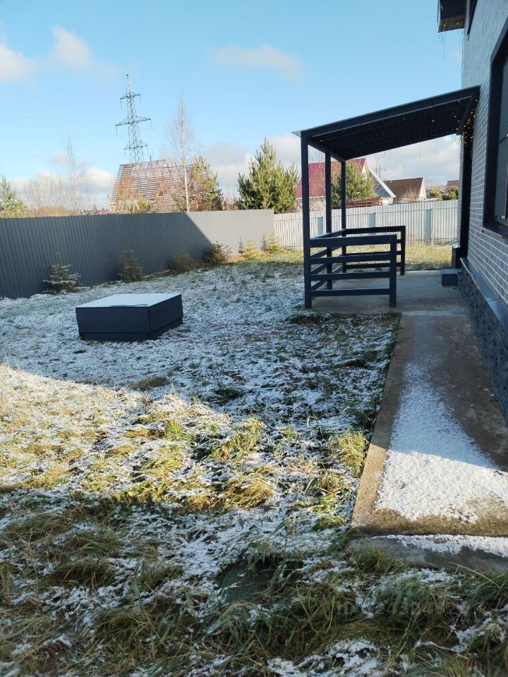 Участок площадью 12 соток огорожен забором с откатными воротами и отдельной калиткой. На территории предусмотрено парковочное место на три автомобиля. Участок оснащён электроснабжением мощностью 15 кВт, колодцем, септиком Топас-С 6.