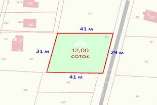 Площадь 12,0 соток, участок ровный, по форме близкой к прямоугольной, размер сторон примерно 30 х 40 м.