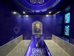 1 этаж: прихожая холл, гардеробная, гостевой санузел, гостиная с камином, кухня-столовая с островом и выходом на летнюю террасу, рабочая кухня, постирочно-гладильная, СПА-комплекс (раздевалка, бассейн 13х4 м переливной с противотоком, водопадом и гейзерами, зона отдыха со вторым светом, душевая, санузел, хамам);