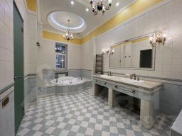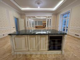 Фасад немецкий клинкер + шамот. Медная фальцевая кровля. Дизайнерская отделка с панорамными окнами, полы наборный паркет (дуб), мрамор (Испания); тканевые обои; двери массив дерева; 2 камина, лестница и подоконники мрамор; перила ковка ручной работы; кессонные потолки; кухня Италия (массив) техника Smeg; сантехника Villeroy & Boch; хамам Tylo. 2 котла Buderus по 96 кВт; 2 бойлера Buderus; приточно-вытяжная вентиляция; система рекуперации воздуха; встроенные в потолок сплит-системы кондиционирования Mitsubishi Electric;