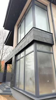 - угловое остекление, 2 этажа, 5 жилых комнат (в том числе 1 мастер-спальня со службами), гардероб и кладовая, 2 террасы, гocтинaя с вторым светом.