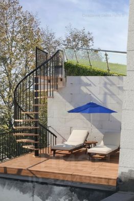 • Винтовая лестница ведёт на эксплуатируемую крышу — смотровую площадку с видами на Химкинский лес и канал им. Москвы