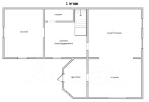 1 этаж: спальня, санузел, бытовая комната, лестница, столовая + гостиная, прихожая