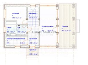 1й этаж: просторная гостинаякухня с выходом на террасупатио; гостевая спальня; санузел.