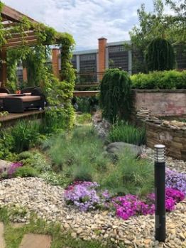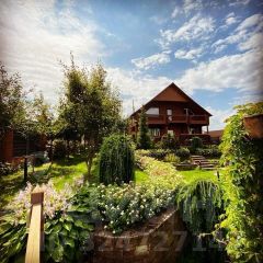 На территории есть гостевой домик, баня,много декларативных деревьев и кустарников,дорогой ландшафтный дизайн.