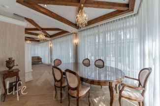 Интерьер в классическом стиле, в мягких, светлых тонах. Со вкусом подобрана мебель и аксессуары. Гостиную украшает шикарный дровяной камин, а в столовой установлена дровяная печь.