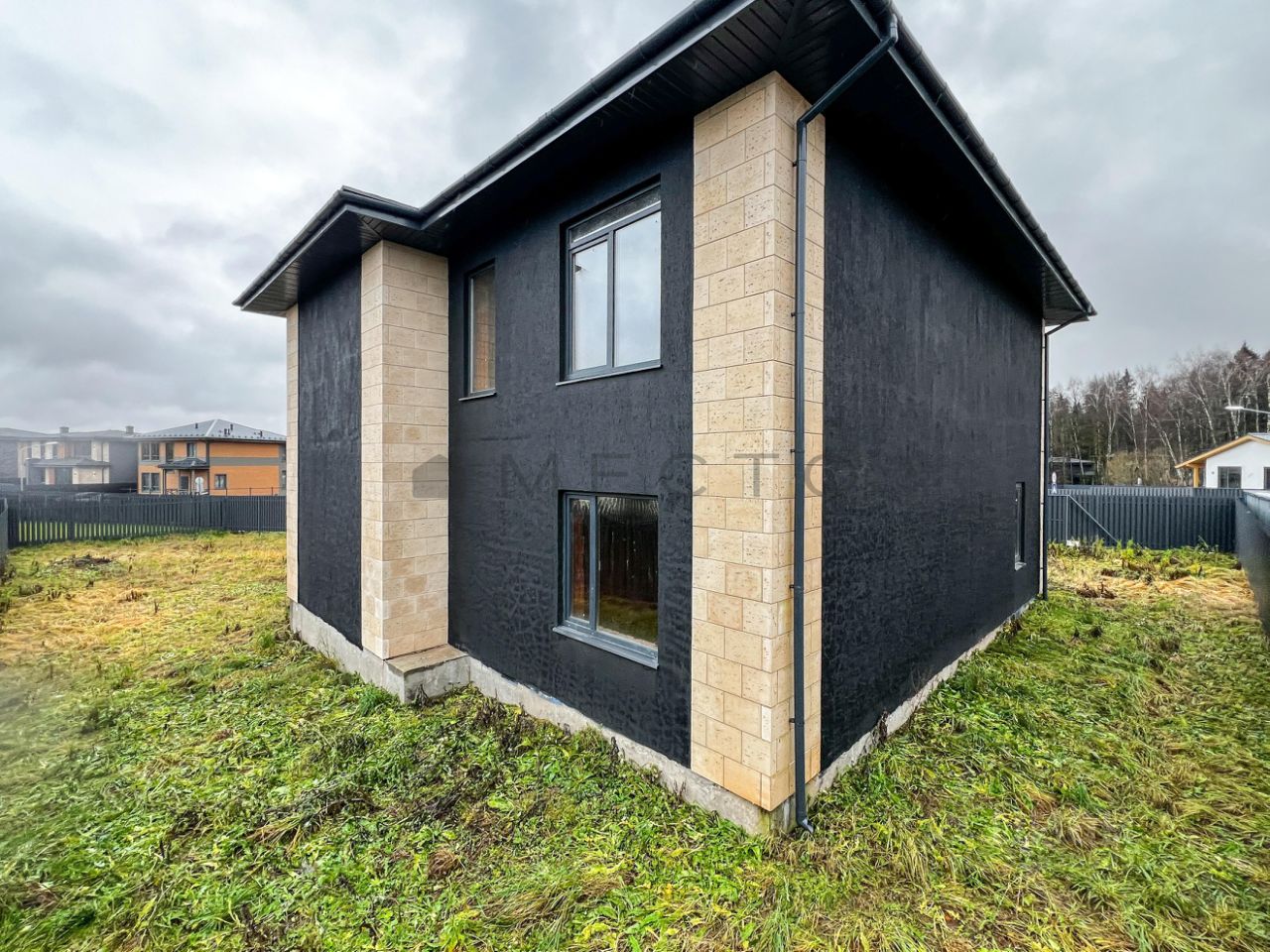 Полностью готов и закрыт тепловой контур дома. Есть электрическое подключение с установленным счетчиком.
