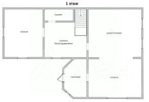 —Первый этаж: спальня, санузел, бытовая комната, лестница, столовая-гостиная, прихожая. — Второй этаж: спальня, комната для отдыха, кладовая.