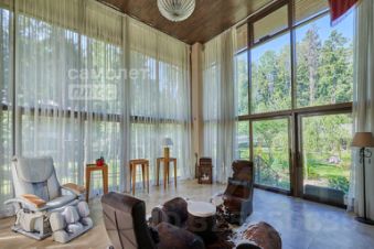 Основной дом 580 м2, 5 спален (мастер- спальня с хамамом и санузлом), кабинет, кухня, столовая, гостиная с камином, зимний сад с панорамным остеклением, 5 санузлов, 3 гардеробных, бассейн, прачечная, гараж на 2 авто.