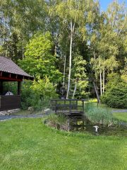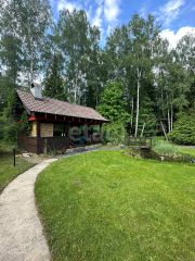 Участок: 25 соток . Высажено более 100 деревьев в том числе голубые ели, корейские ели, Длинно хвойные ели, Бансаи, ивы и плодовые деревья, устроены альпийские горки с тоннами горных камней. По всему участку проложена система дренажа, система полива . На участке имеется Барбекю домик 45 кв.м. с печью (мангалом) , столешницы изготовлены из шоколадного мрамора. Кастомными столом и скамьями из дуба и предметы ручной работы. Площадь многолетнего газона 20 соток. По периметру участка расположено Краснополянское лесничество 70 соток арендовано с возможностью выкупа и проведена парковая обработка леса. Также по всему участку установлена система освещения.