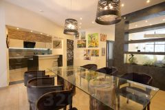 Аквариум в дизайнерской перегородке разделяющей зоны столовой от гостиной.