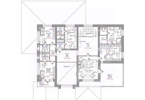 - Удобство и функциональность: По проекту предусмотрено 7 спален и 6 санузлов, что идеально подходит для большой семьи или дружной компании.