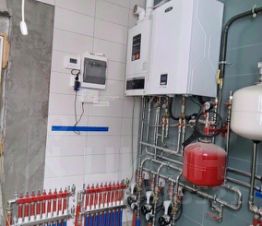 Все коммуникации центральные, газ заведен. Два котла газовый и электрический.