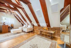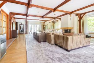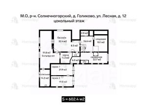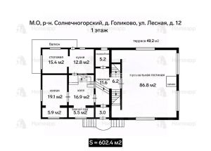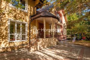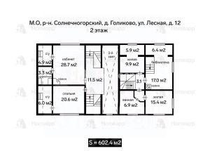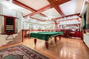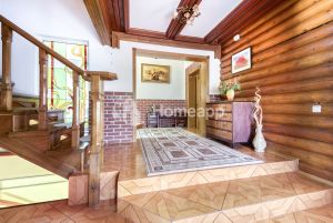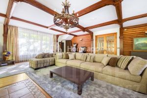 Номер лота: 86937. Продается загородный дом площадью 602.4 м² в элитном посёлке Голиково-2, в 8 км от МКАД. Дом состоит из 2 частей: бревенчатого и каменного дома, сочетая экологичность и надежность. В доме имеются бассейн, сауна, бильярдная, тренажеры, большая музыкальная гостиная-салон с просторной террасой. В деревянной части: двусветная гостиная, зеркальная гимнастическая комната, малая столовая и каминная комната. Санузлы с окнами. На техническом цокольном этаже: несколько кладовых комнат, постирочная, серверная. Оборудован зимний гараж на 2 машины, площадка на 3 м/м и навес для 4 машин. Детская площадка под окнами хозяйского кабинета. Участок 16,85 сот. с выходом в лес. В поселке круглосуточная охрана, видеонаблюдение с выводом на пульт охраны.