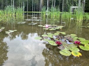 Рядом с поселком благоустроен лесной сквер, с прогулочными дорожками и озером.