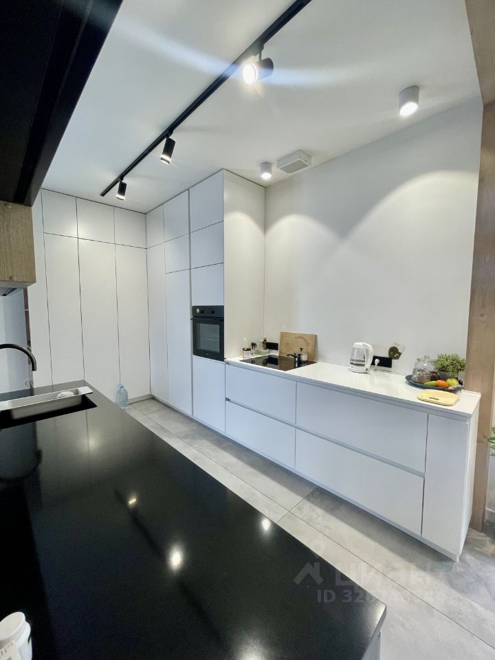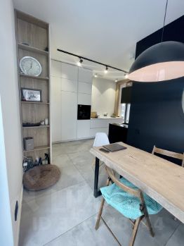 - Кухня с встроенной техникой (духовой шкаф, большой холодильник, морозильная камера, посудомоечная машина, стиральная машина). На кухне расположен технический узел (газовый котел, водонагреватель, фильтр для воды)