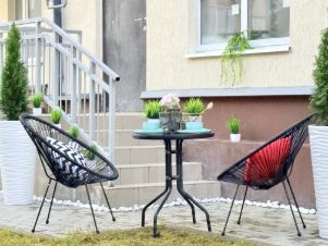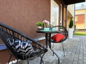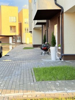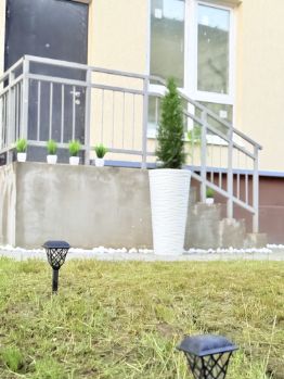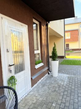 с дополнительным выходом на земельный участок, где можно оборудовать свою террасу, или просто газон грядки, на данный момент огорожен туями.
