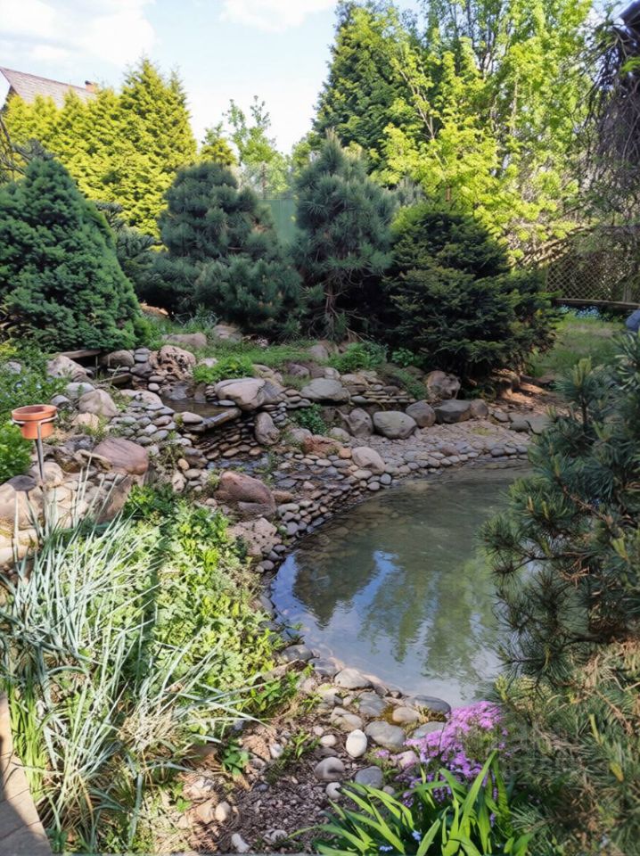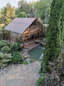 На участке 15 соток: внешнее ограждение, ландшафт, альпийская горка, теннисный корт, плодовые, лиственные и хвойные деревья, кустарники (смородина, крыжовник, ирга, жимолость), липа, сирень, клен, туи, ели, гостевой домик (комната, санузел, кухня-прихожая, котельная) с навесом на две машины, просторная парковочная зона, баня 50 кв.м.