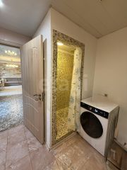Дом отличается продуманной планировкой и высоким качеством отделки. На первом этаже расположены просторная прихожая с гардеробной, кухня-гостиная с авторским дизайном, санузел, душевая, постирочная, баня-сауна и холодная кладовая для хранения запасов. Второй этаж включает зимний сад, гостиную с камином, игровую комнату, три спальни и санузел, а также выход на балкон. Третий уровень отведен под две хозяйские спальни с гардеробными. Чердачное пространство площадью 90 м² может быть использовано как зона отдыха, домашний кинотеатр или дополнительное место для хранения.