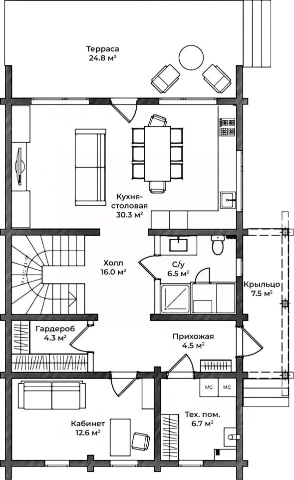 1 ЭТАЖ. Дневная зона и гостевая: