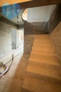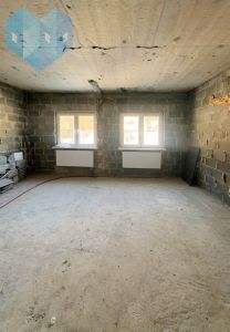 * Внутренние работы в доме находятся на стадии предчистовой отделки: стены цокольного этажа оштукатурены, на втором этаже две комнаты и коридор также оштукатурены под покраску, некоторые участки уже окрашены. В цокольном помещении размещены бойлерная с котлом и системой очистки воды.