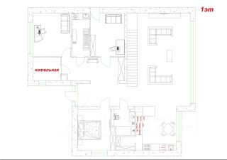 На первом уровне просторная гостиная 60м2 с панорамным остеклением, кухня в молочных оттенках, 2 спальни, кабинет, постирочная, прихожая, гостевой санузел, котельная.